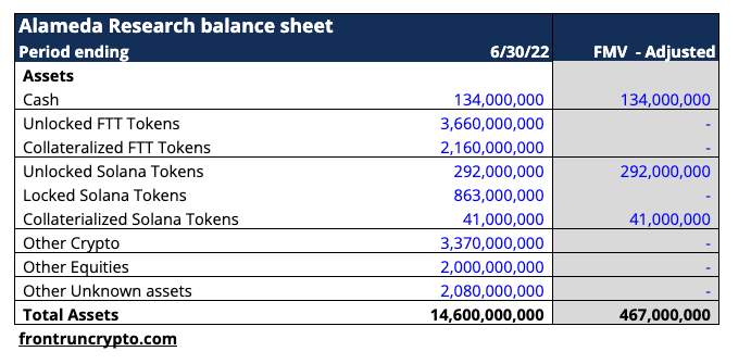 My assessment of the fair market value of all assets on Alameda’s balance sheet is ~$500 million, depicted below.