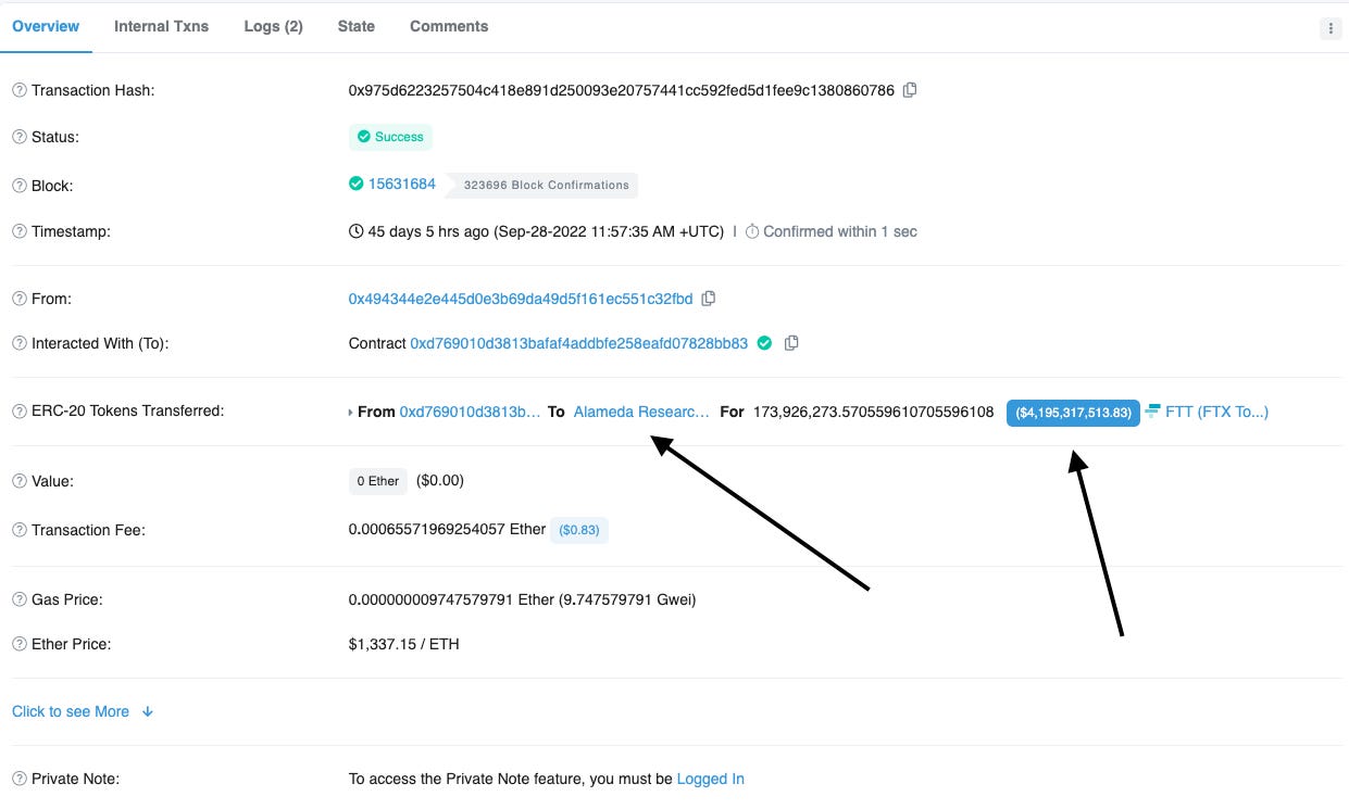 $4.1 billion dollars of FTT tokens were sent to Alameda Research on 9/26 11:57 AM UTC