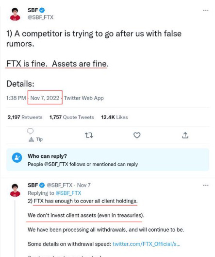 At this point, SBF interjects by tweeting (and deleting) that “everything is ok” and depositor funds were safe…